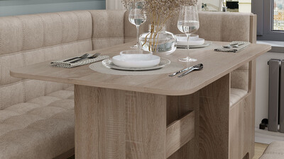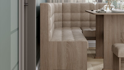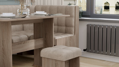 | Дополнительная информация | В состав входят: стол, угловая скамья и два табурета. Оттенок обивки может отличаться в зависимости от теплоты и яркости освещения, угла обзора, цвета рядом стоящих объектов, а также из-за разной цветопередачи экрана, настроек монитора |