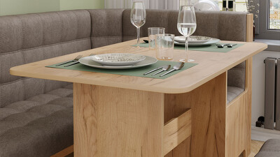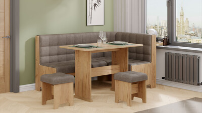 | Дополнительная информация | В состав входят: стол, угловая скамья и два табурета. Оттенок обивки может отличаться в зависимости от теплоты и яркости освещения, угла обзора, цвета рядом стоящих объектов, а также из-за разной цветопередачи экрана, настроек монитора |